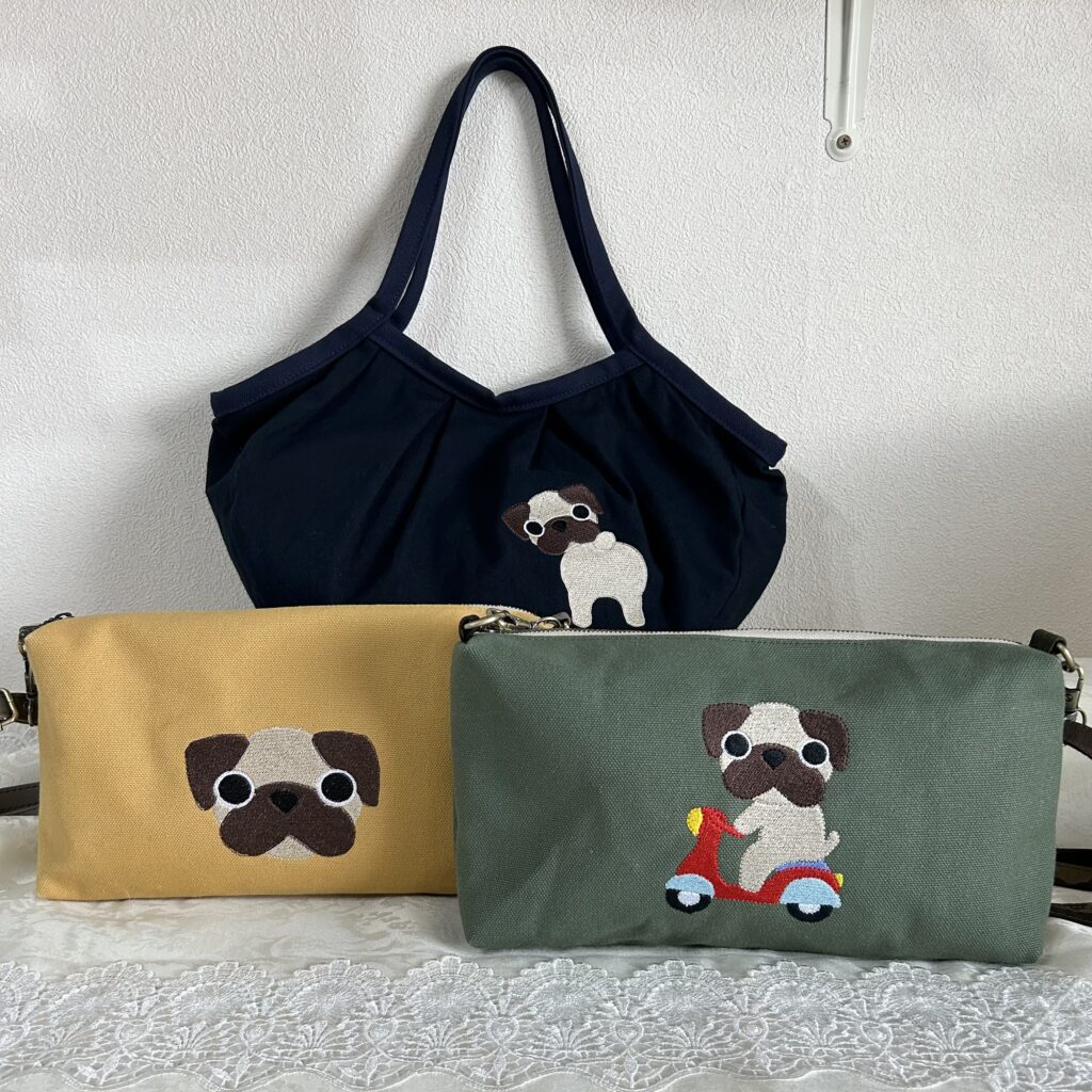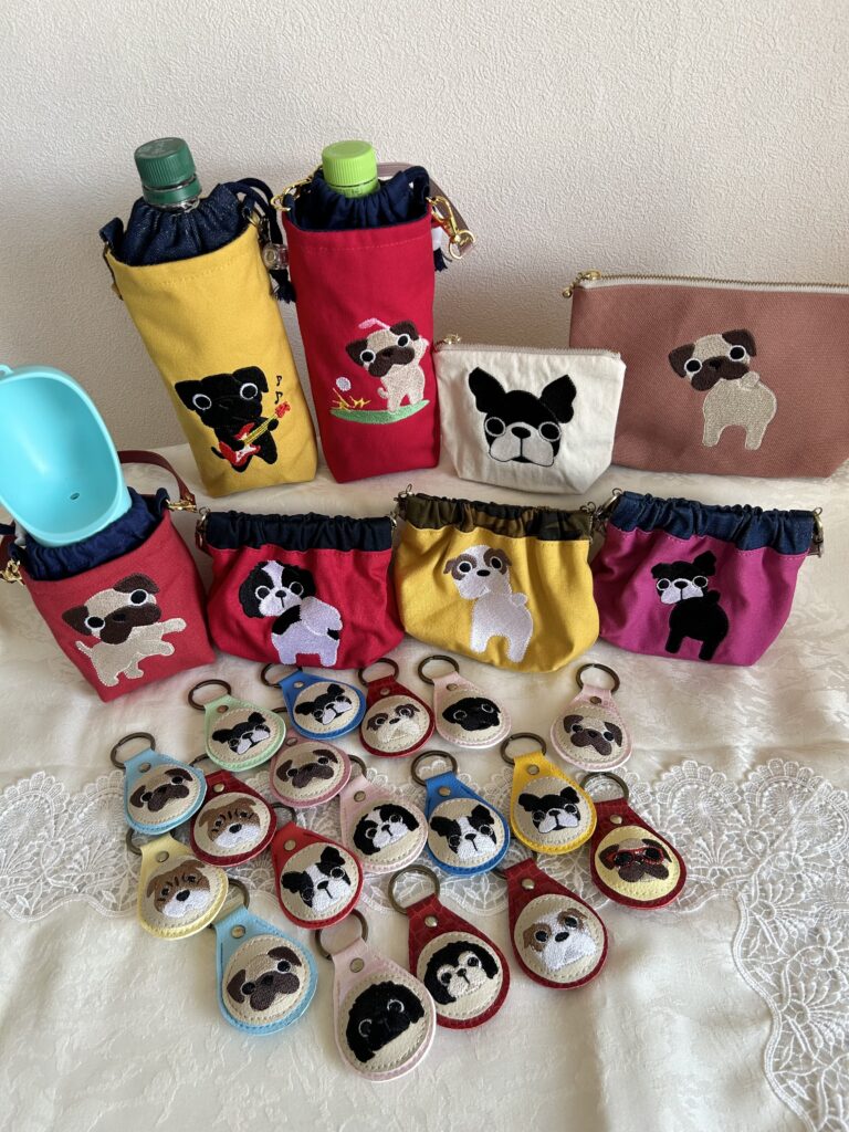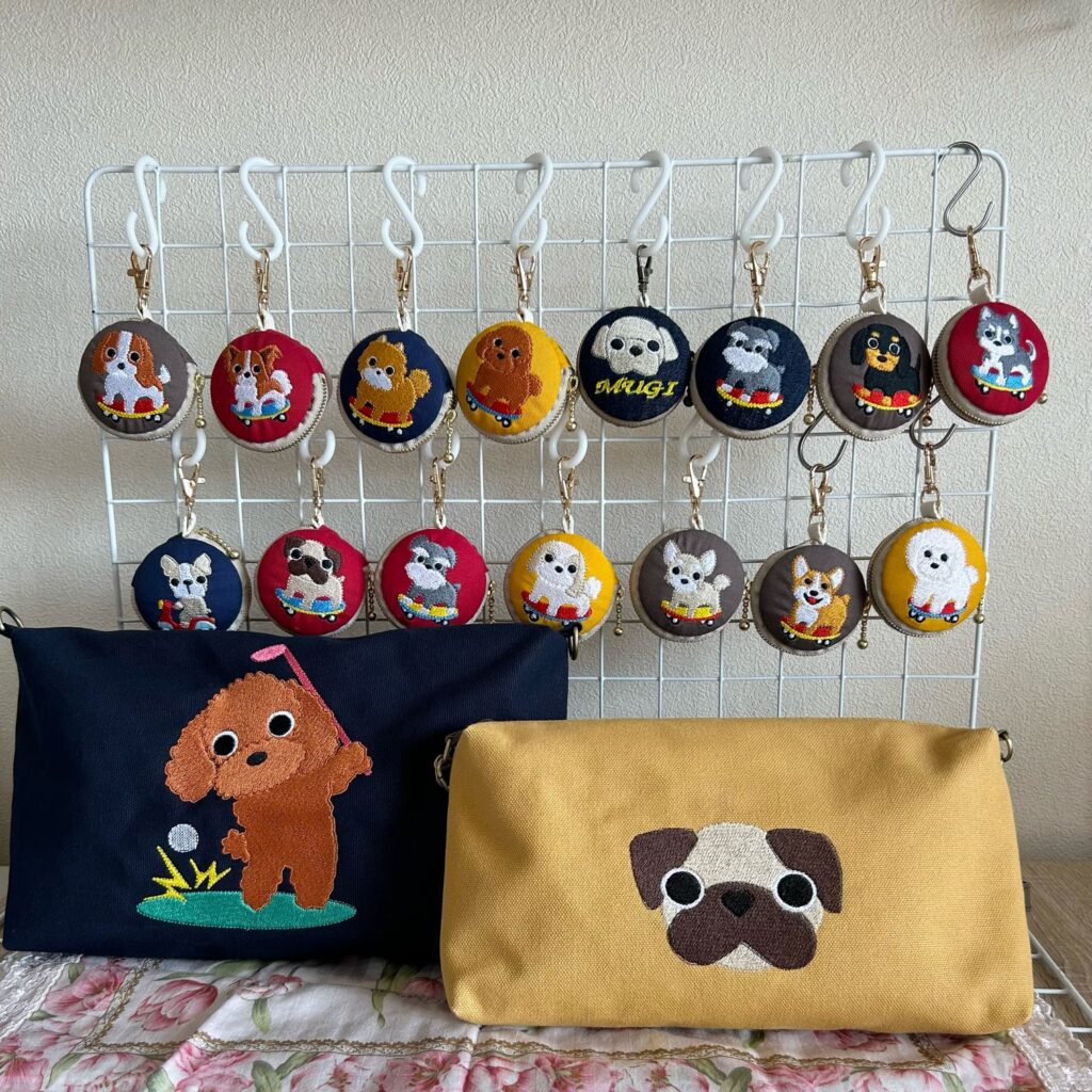 オリジナルデザインのわんちゃん刺繍の小物