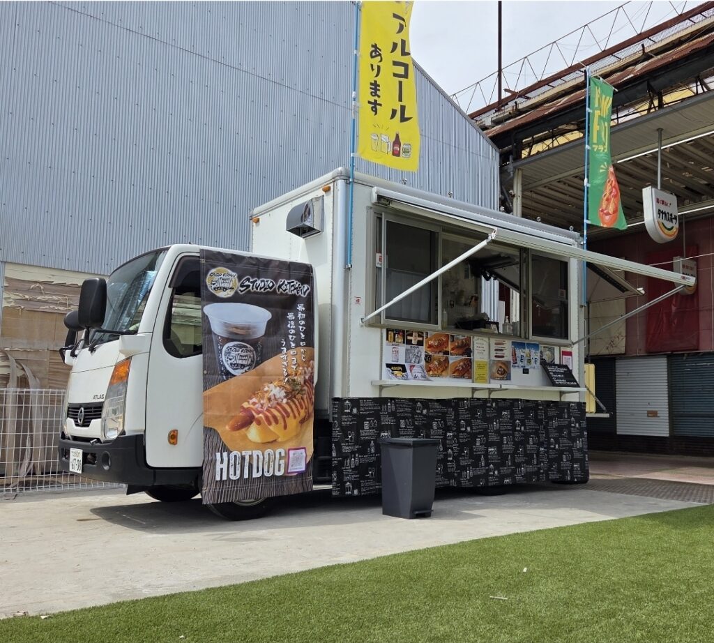 キッチンカーによるホットドッグ、フランクフルト、ドリンク、アルコール類、デザート系の販売。
